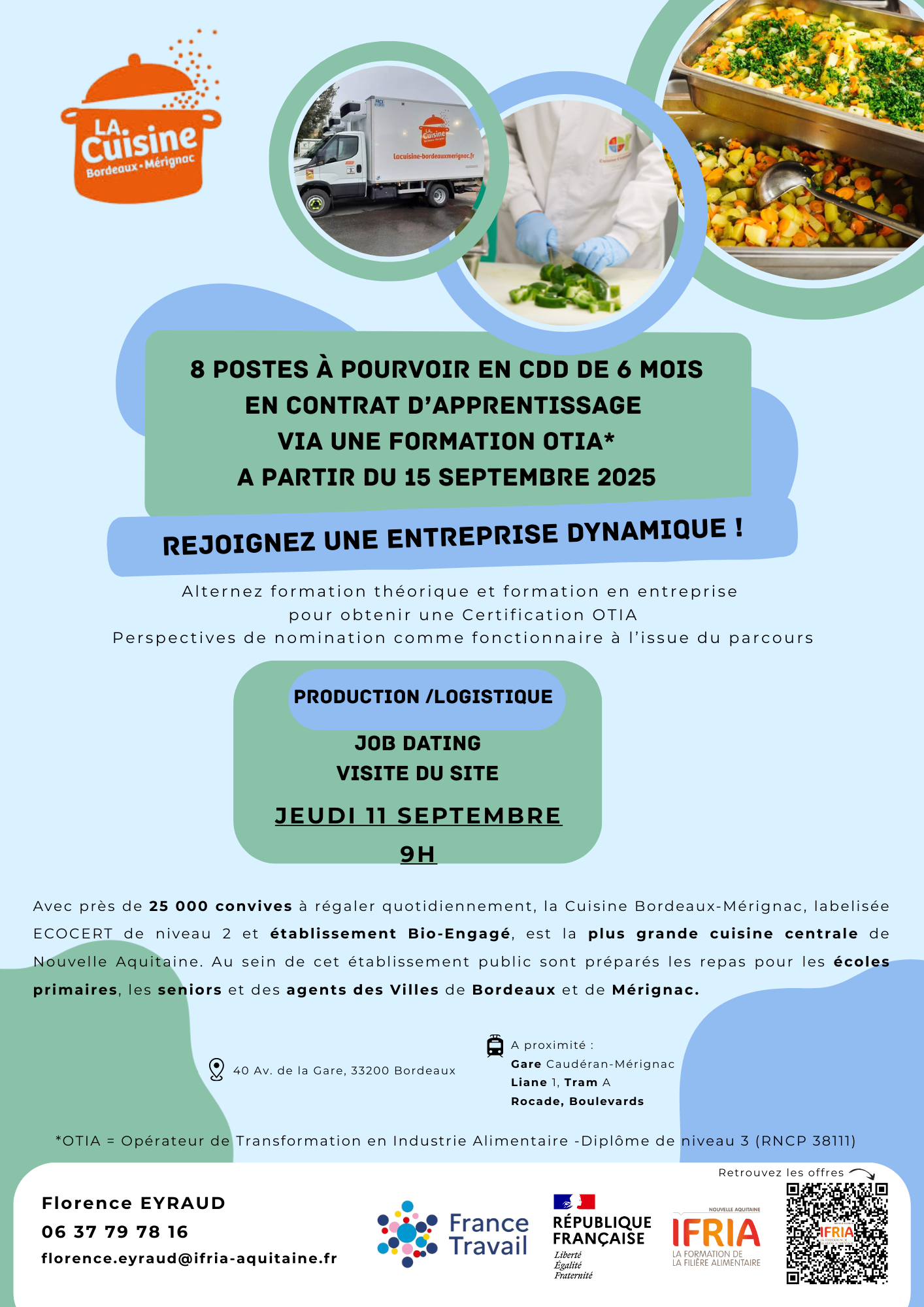 Envoyez votre candidature complète à florence.eyraud@ifria-aquitaine.fr ou rh@sivubm.com